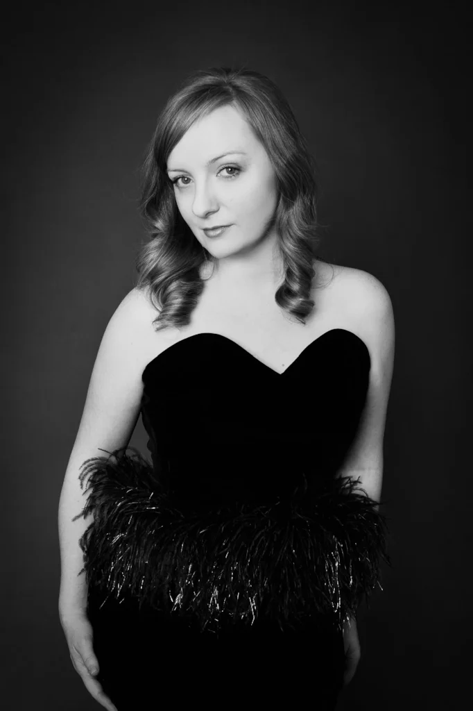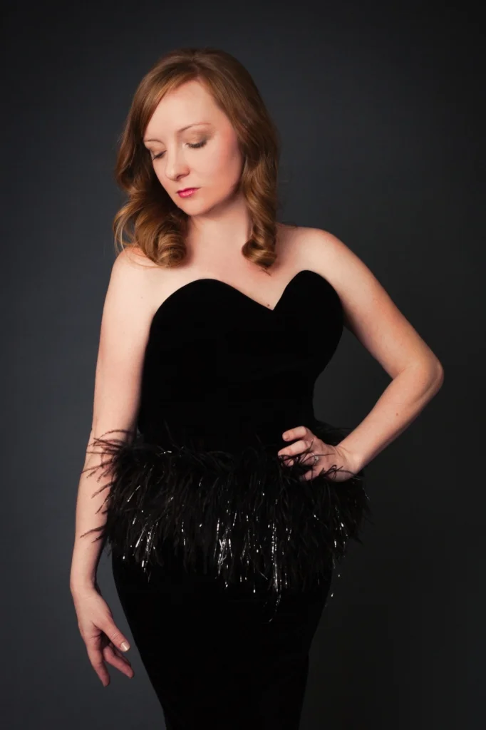 Recently I bought this gorgeous black velvet vintage dress and have been so excited to use it for a photo shoot! Now this dress is divine... did I mention it has silver feathery bits?! And Jessica was gracious enough to wear it for part of her shoot. I always advise people to bring in a few outfits for photo shoots, but it is a lot of fun to play dress up with the studio wardrobe too!